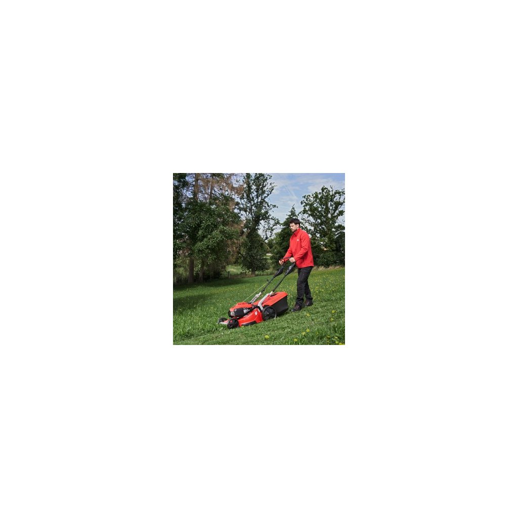 Díky použití mnoha robustních hliníkových komponentů, jako je vázání řídítek, rukojeť přední brzdy a nastavení výšky řídítek, je tato sekačka se šířkou záběru 46 cm velmi odolná.