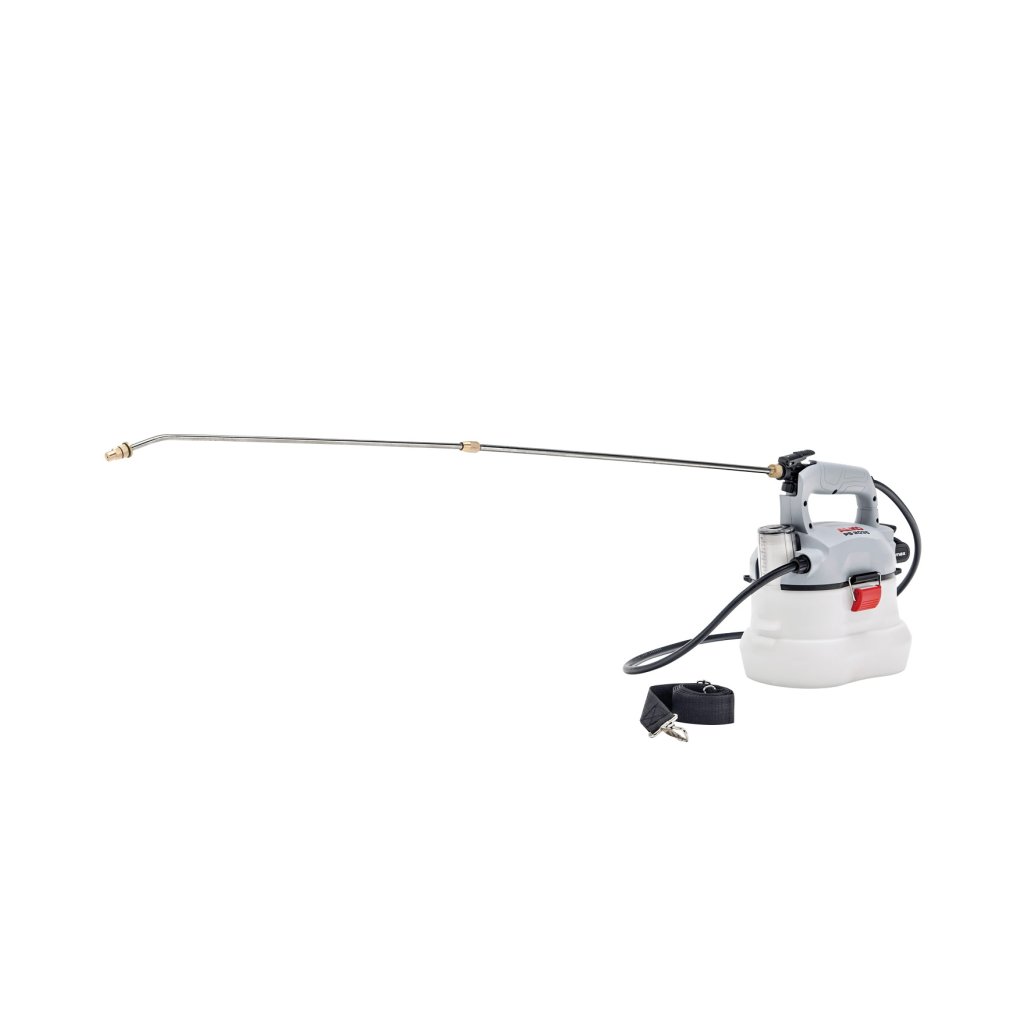S 20 V Li-Ion akumulátorem můžete pracovat až 60 minut. Akumulátor a nabíječka nejsou součástí balení. Nádrž na vodu má objem 3,5 litru a čerpadlo dosahuje tlaku 3,5 baru. S hmotností pouhých 2,3 kg včetně baterie je práce s postřikovačem příjemná a neunavující. Další výhodou je bezhlučný provoz přístroje. V balení najdete rovněž odměrku a ramenní popruh.