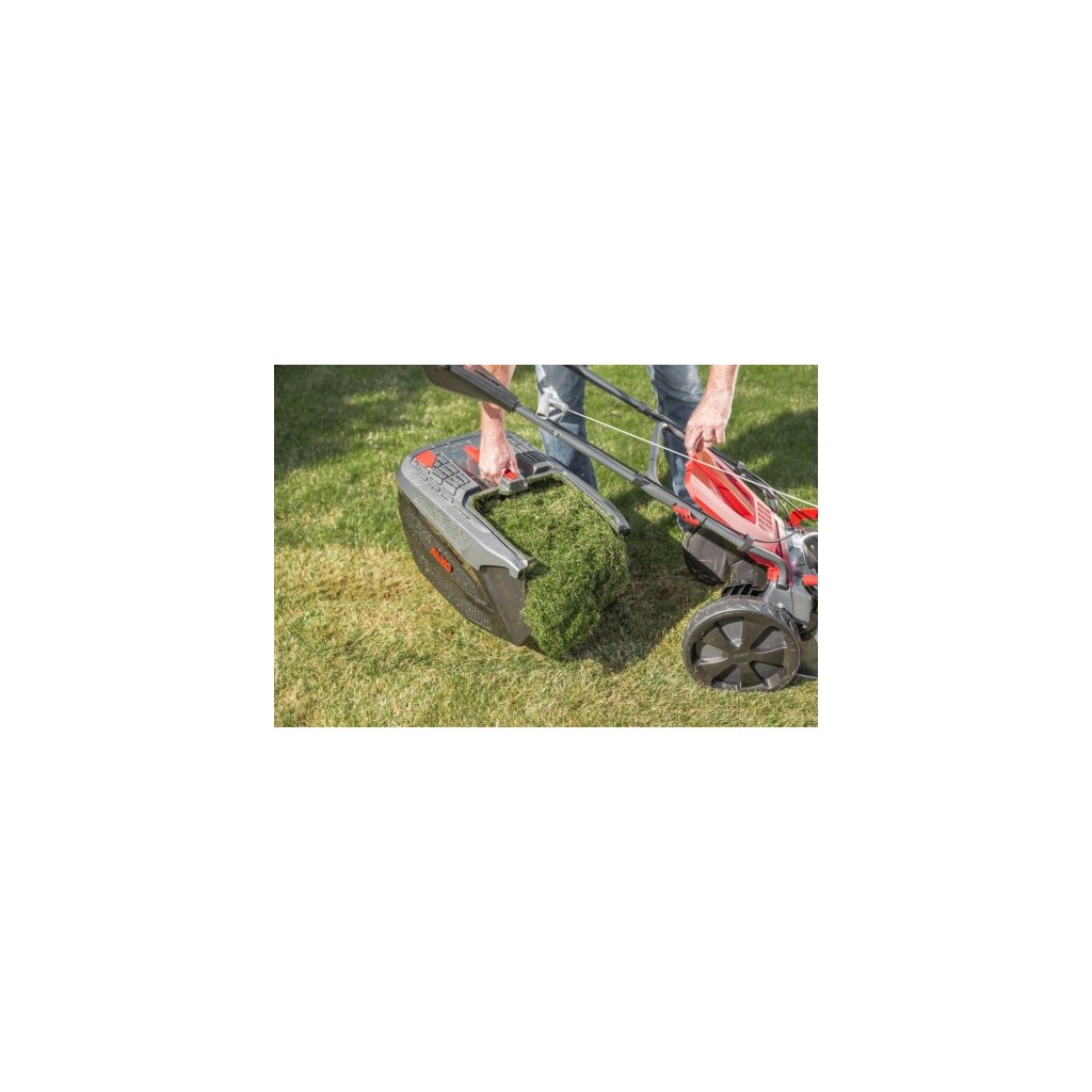 Benzínová sekačka na trávu s pracovní šířkou 46 cm umožňuje efektivní sečení travních ploch až do velikosti 1100 metrů čtverečních. Výšku sečení lze nastavit centálně v 7 krocích od 30 mm do 80 mm pro dokonalé přizpůsobení vašim požadavkům. Výkon zajišťuje benzínový motor AL-KO PRO s 2,1 kW, který je konstruovaný s ohledem na velkou zátěž při nízké spotřebě paliva a dlouhou životnost. Díky funkci 4INONE lze trávník posekat a dokonale dopravit do sběrného koše o velikosti 65 l, který disponuje ukazatelem stavu naplnění. Další výhodou je možnost mulčování a funkce bočního výhozu. Skvělá aerodynamika sekačky s technologií MaxAirflow zaručuje úplné naplnění koše, což v důsledku znamená, že koš nemusíte vyprazdňovat tak často, jako je tomu u konkurenčních sekaček. Pohodlí při práci zvyšuje ergonomicky tvarovaná rukojeť a XXL kola s kuličkovými ložisky a jednorychlostním pohonem.