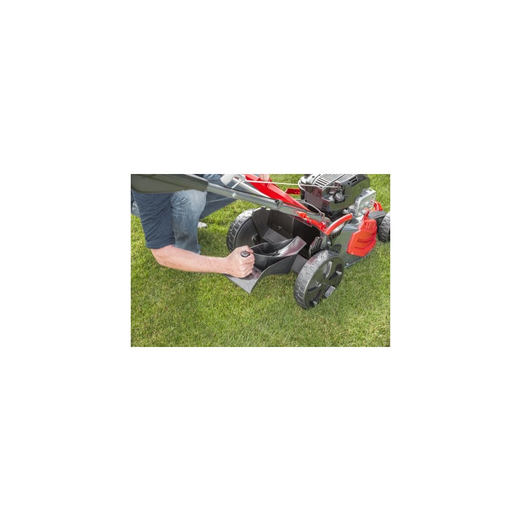 Benzínová sekačka na trávu s pracovní šířkou 46 cm umožňuje efektivní sečení travních ploch až do velikosti 1100 metrů čtverečních. Výšku sečení lze nastavit centrálně v 7 krocích od 30 mm do 80 mm pro dokonalé přizpůsobení vašim požadavkům. Výkon zajišťuje benzínový motor Briggs & Stratton 500 E s 2 kW, který je konstruovaný s ohledem na velkou zátěž a dlouhou životnost. Díky funkci 4INONE lze trávník posekat a dokonale dopravit do sběrného koše o velikosti 65 l, který disponuje ukazatelem stavu naplnění. Další výhodou je možnost mulčování a funkce bočního výhozu. Skvělá aerodynamika sekačky s technologií MaxAirflow zaručuje úplné naplnění koše, což v důsledku znamená, že koš nemusíte vyprazdňovat tak často, jako je tomu u konkurenčních sekaček. Pohodlí při práci zvyšuje ergonomicky tvarovaná rukojeť a XXL kola s kuličkovými ložisky a jednorychlostním pohonem.