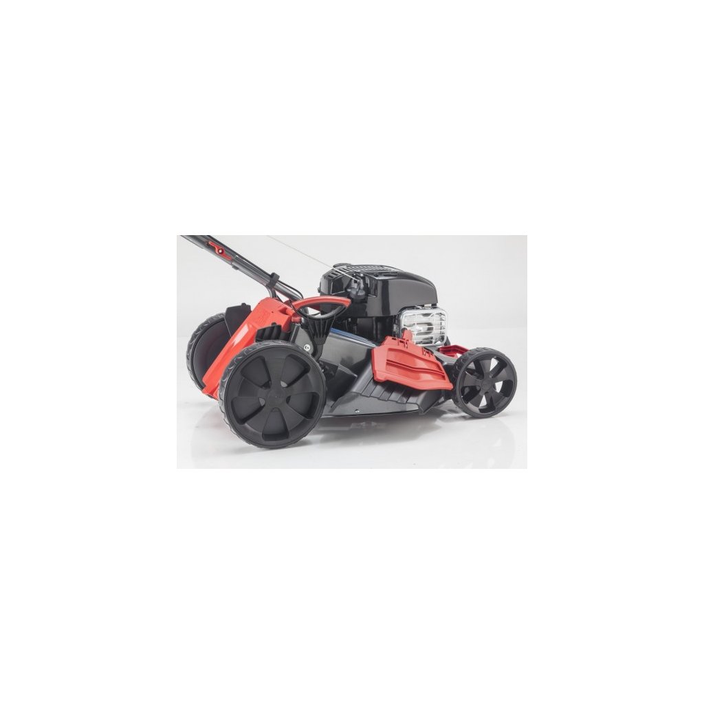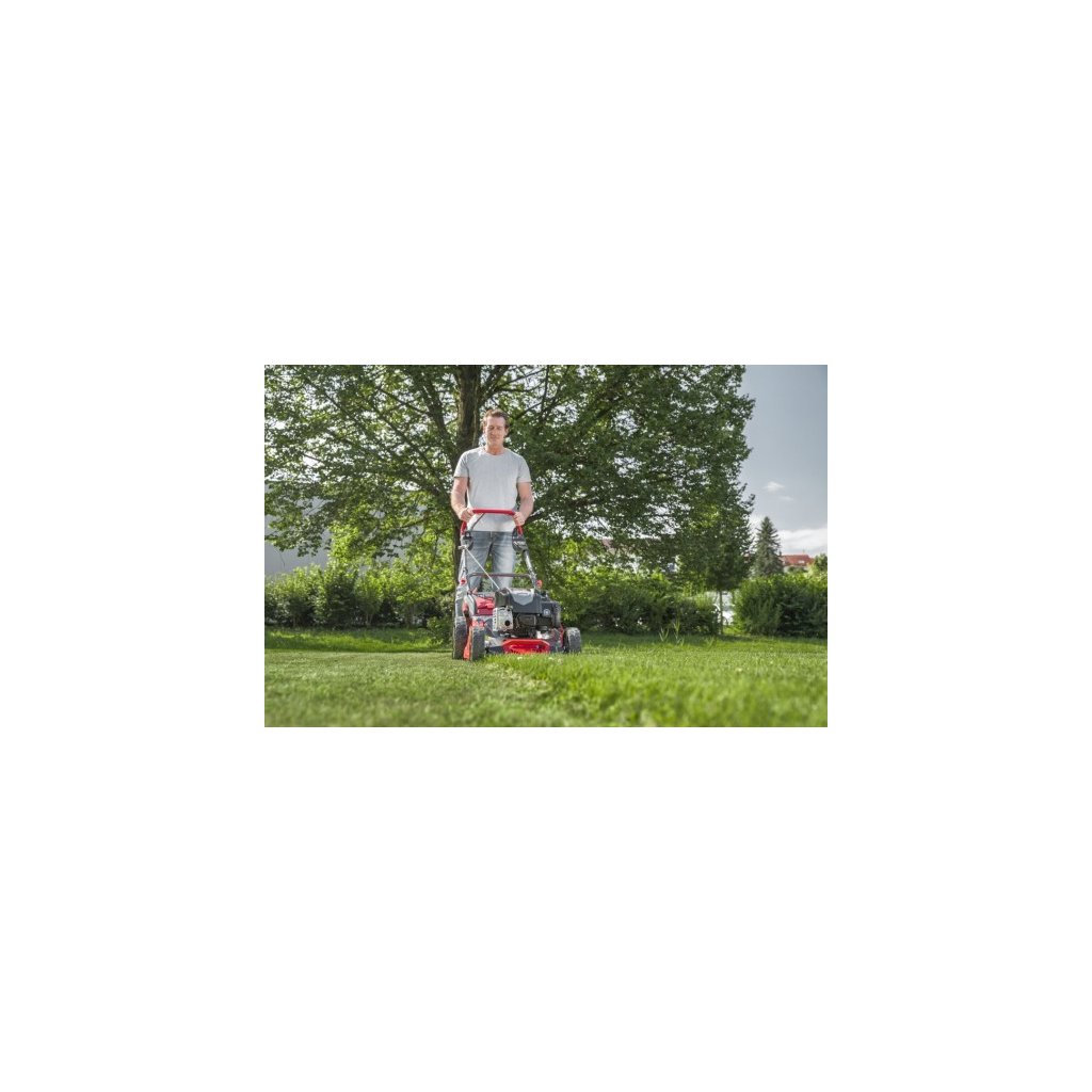 Benzínová sekačka na trávu s pracovní šířkou 46 cm umožňuje efektivní sečení travních ploch až do velikosti 1400 metrů čtverečních. Výšku sečení lze nastavit centrálně v 7 krocích od 30 mm do 80 mm pro dokonalé přizpůsobení vašim požadavkům. Díky benzínovému motoru Briggs & Stratton s výkonem 2,4 kW a pohonem kol s plynulou regulací (od 2,5 do 4,5 km/h), je sečení zahrady i ve svahu velmi snadné. Díky funkci 4INONE lze trávník posekat a dokonale dopravit do sběrného koše o velikosti 70 l, který disponuje ukazatelem stavu naplnění. Další výhodou je možnost mulčování a funkce bočního výhozu. Mimořádně vysoké šasí a skvělá aerodynamika sekačky s technologií MaxAirflow zaručuje úplné naplnění koše, což v důsledku znamená, že koš nemusíte vyprazdňovat tak často, jako je tomu u konkurenčních sekaček. Optimální easyDrive kokpit se snadno přístupnými ovládacími prvky a příjemným polstrováním rukojeti ještě více zpříjemňuje práci při sekání velkých travních ploch. Integrované transportní držadlo je ideální při přepravě sekačky, nebo přenášení sekačky přes překážky. Funkce servisní polohy umožňuje snadný přístup při čištění sekačky a šetří místo při jejím skladování.