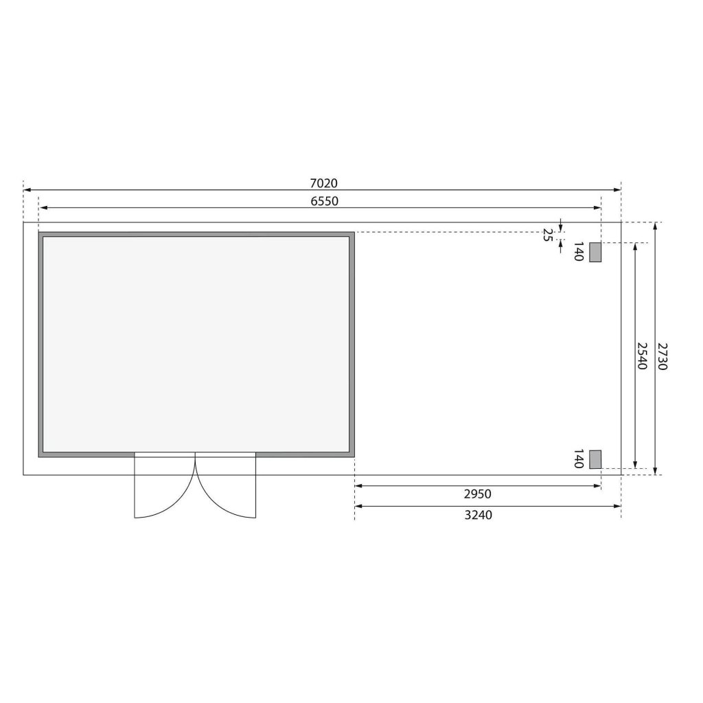 dřevěný domek KARIBU KASTORF 7 + přístavek 320 cm včetně zadní a boční stěny (31561) terragrau LG3598