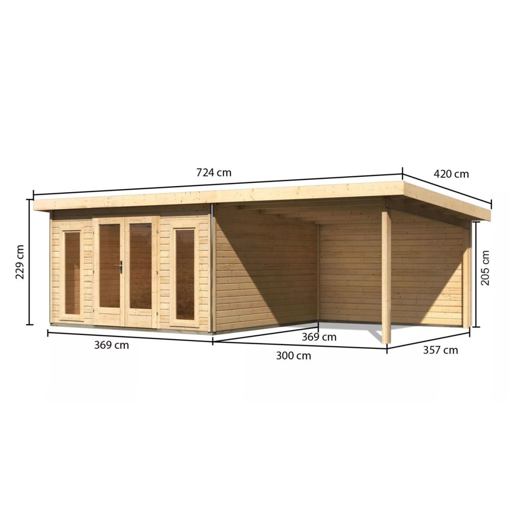 dřevěný domek KARIBU RADEBURG 3 + přístavek 330 cm včetně zadní stěny (31488) natur LG3946