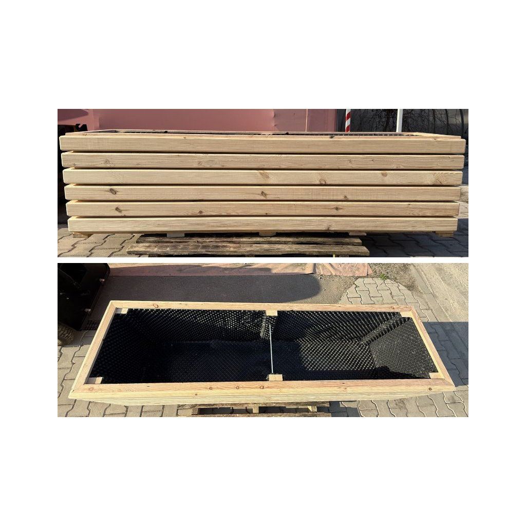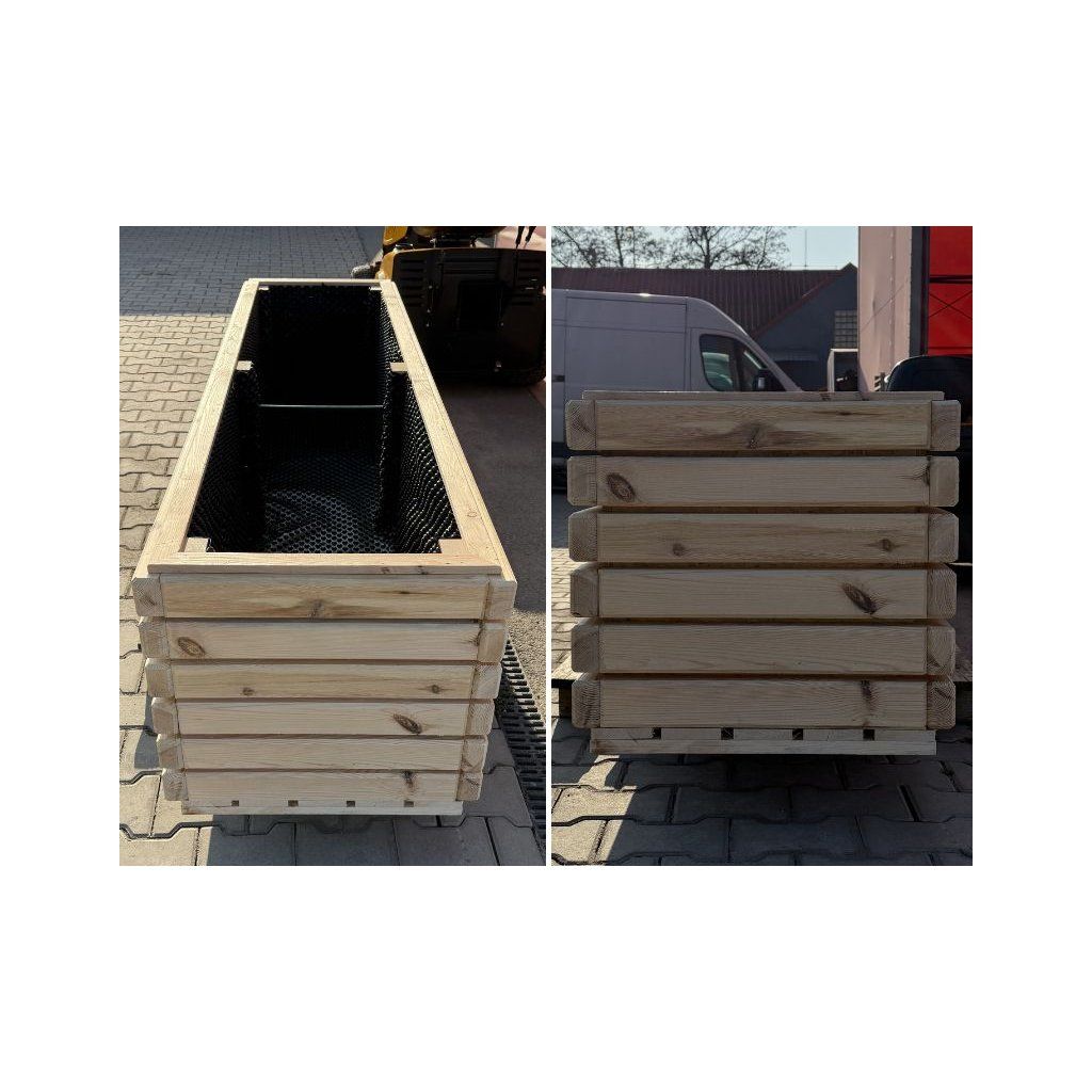 Květináč je vyroben z kvalitních smrkových hranolů, které zajišťují vysokou pevnost a stabilitu. Díky hmotnosti cca 110–140 kg pevně drží na místě i při plném zatížení.