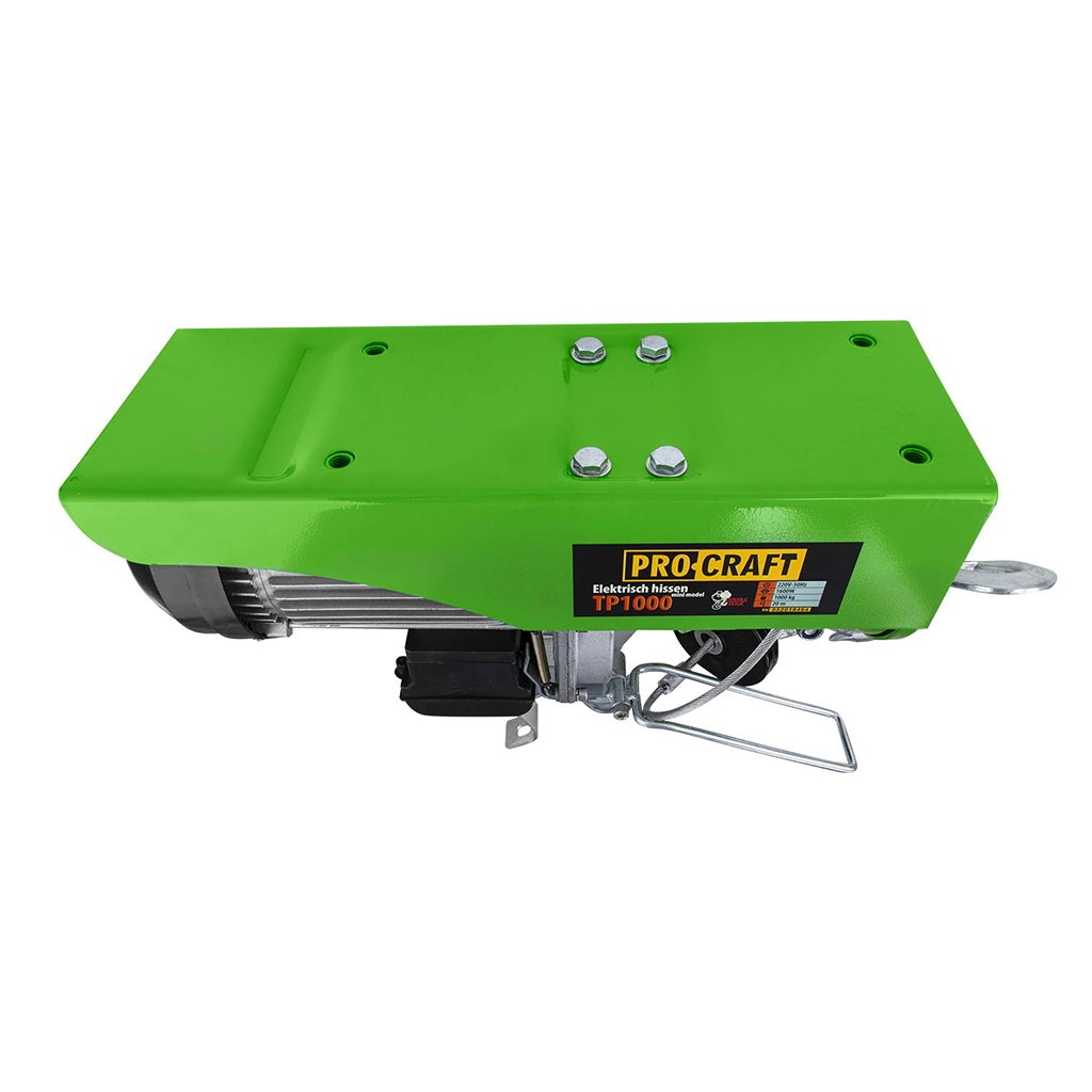 Elektrický lanový naviják Procraft TP1000 je určen k spouštění nebo zdvihání pevných břemen. Vysokou nosnost až do 1000kg umožňuje silný indukční motor s výkonem 1600W. Bez kladky umožňuje zvedání až 500kg na výšku až 20m. Možnost použití s jednoduchým nebo dvojitým závěsem pomocí kladky. Kvalitní ocelové lano a spolehlivý motor zaručuje dlouhou bezporuchovou práci. Součástí dodávky jsou 2 úchytky, ocelové lano. Balení karton.