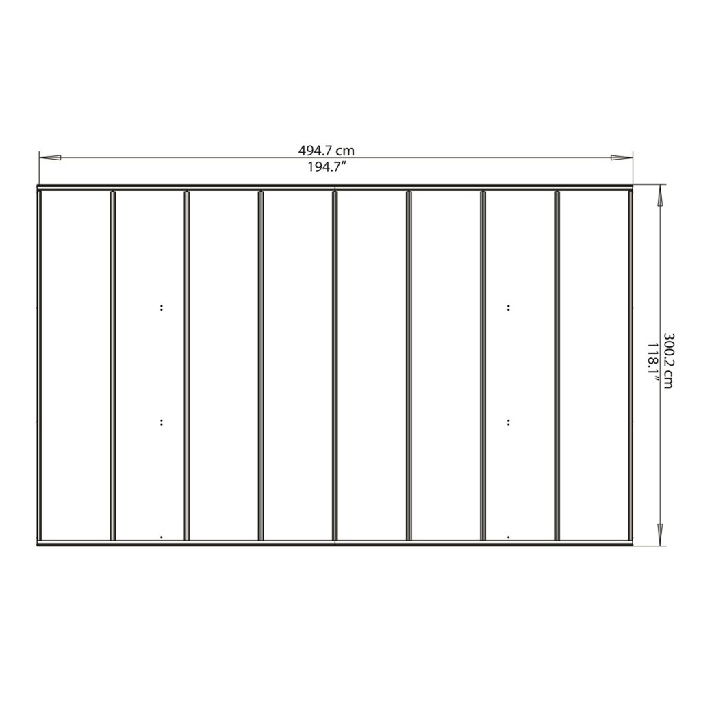| Rozměry přístřešku (D x Š x V): | 494,7 x 288,8 x 273,5 cm |