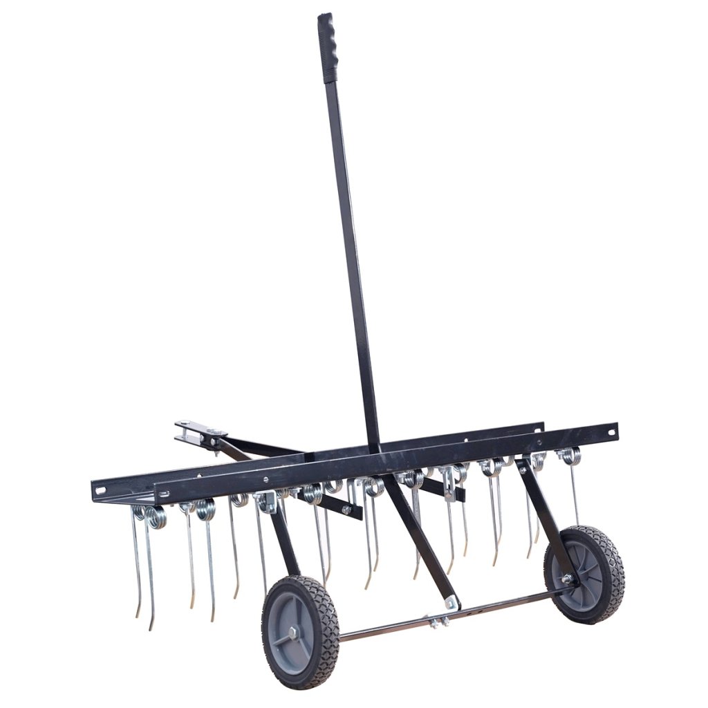 přívěsné hrábě vhodné na odstranění staré trávy, listí a mechu z trávníků