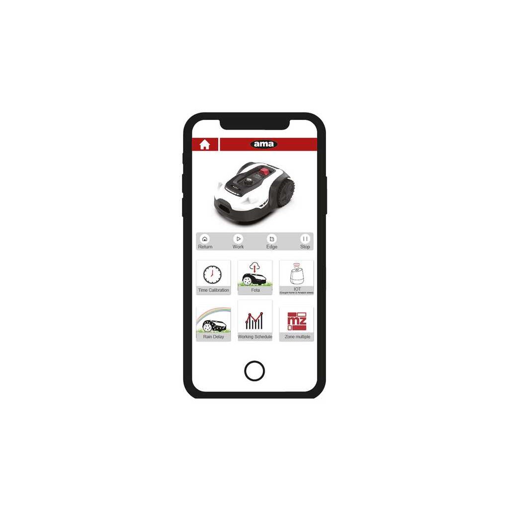 je vyspělým modelem robotických sekaček od Italského výrobce zahradní techniky AMA, který disponuje všemi vymoženostmi, které tento sektor nabízí. Tato sekačka je určena na plochy o maximální výměře 1.600 m2 v závislosti na složitosti dané zahrady.