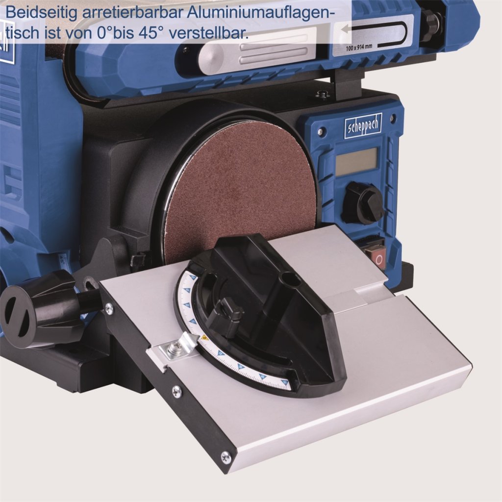 BTS 800 VARIO - multifunkční pásová a čelní bruska s nastavitelnou rychlostí Multifunkční bruska Scheppach BTS 800 VARIO dokáže díky spojení brusného pásu a klasické kotoučové brusky vyřešit většinu úkolů spojenou s broušením ve vaší dílně. Zdrojem síly je indukční motor, jehož předností je i velmi tichý chod. Velkou předností je možnost nastavení rychlosti otáček tak, abyste vždy docílili optimálních výsledků při broušení různých druhů materiálů. Rychlost je zřetelně čitelná na LCD displeji. Další výhodou celé brusky je její variabilita. Celá jednotka s brusným pásem se může naklopit o 90° z horizontální až do vertikální polohy. Přídavný stolek s úhlovým pravítkem se může sklopit a zajistit v rozmezí 0° až 45°. Na rozdíl od mnoha podobných brusek na trhu je kotoučová bruska integrována do těla stroje takovým způsobem, že nebrání práci ani s velkými obrobky. Brusný papír na kotoučovou brusku se přidělá jednoduše pomocí suchého zipu. Celá základna stroje je vyrobena z litiny, což dává celé brusce výbornou stabilitu bez ohledu na to, jaký tlak na brusnou plochu vaše práce vyžaduje. Výsledek je vždy vynikající. Stroj je vybaven odsávacím nástavcem a podstavec je vybaven otvory pro připevnění stroje k pracovní desce.Doplňkové parametry