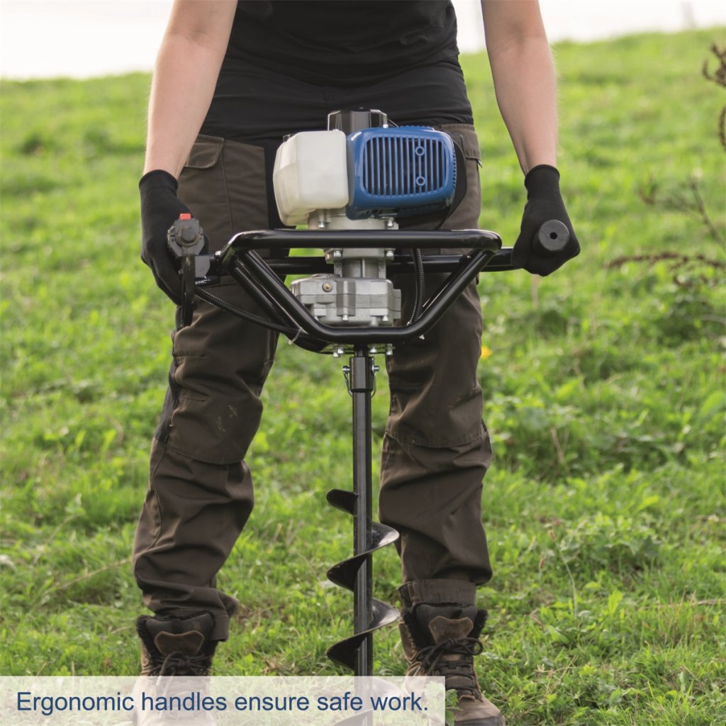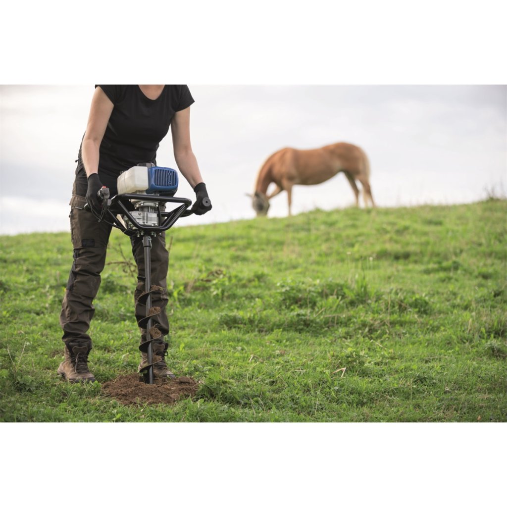 EB 2000 - půdní vrták Pokud chcete postavit plot, ohradu, základy pro zahradní domek nebo třeba vysázet větší množství stromků, můžete si velmi usnadnit práci použitím půdního vrtáku. Není problém zkrátit dobu hloubení děr až o 80% a ušetřit si tak i spoustu zbytečného úsilí. Správný nástroj by pro Vás mohl být model EB 2000. Regulace otáček i vypínač jsou pohromadě na pravé rukojeti a spolu s příznivou hmotností dělají stroj velmi pohodlný na ovládání. K tomu přispívá i moderní centrální uložení motoru uprostřed rámu. Stroj je tak výborně vyvážen a i při vyšších otáčkách se ovládá mnohem lépe, než starší konstrukce s motorem uloženým excentricky mimo rám. Robustní rám chrání nejenom Vás, ale i stroj samotný při jeho položení na zem. Srdcem stroje je silný motor s odstředivou spojkou a elektronickým zapalováním pro snadné starty a dostatečně objemnou nádrží. Má membránový karburátor, takže z něj nevyteče palivo ani při sebevětším náklonu. Stroj se dodává včetně 3 půdních vrtáků o průměru 100, 150 a 200 mm.Podmínky prodloužené záruky naleznete zde.