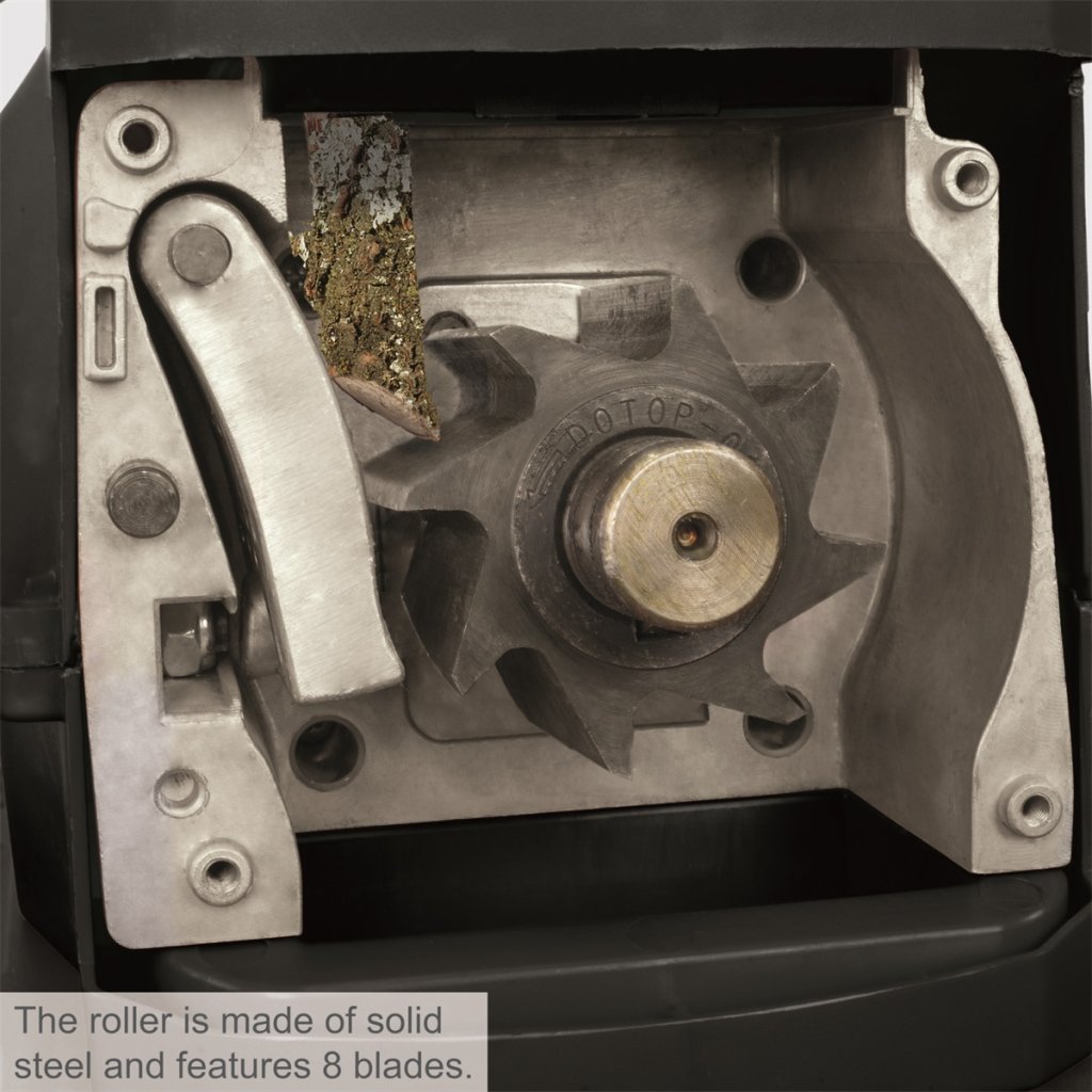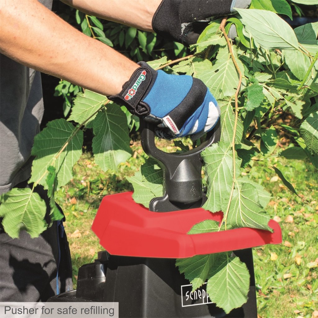 Scheppach GS 60 je praktický pomocník pro drcení zahradního odpadu, jako jsou větve prořezaných stromů nebo živých plotů, náletové dřeviny a podobný dřevní odpad. Zpracovává odpad na pravidelné štěpky, které lze využít pro účely kompostování, jako mulč nebo i jako palivo. K drtiči je standardně dodávaný integrovaný plastový sběrný box, do kterého lze štěpky zachytávat. Box je z průsvitného materiálu, takže lze snadno pohledem kontrolovat jeho naplnění. Základem výkonného drtícího ústrojí je pomaloběžný drtící válec, který je pro delší životnost uložen v pevném kovovém bloku. Ozubený válec si sám vtahuje větve do vnitřku ústrojí, což je velmi pohodlné. Díky nízkým otáčkám je stroj velmi tichý. Drtič je vybaven silným motorem 2800 W chráněným proti přetížení kvalitní elektronikou a motorovou brzdou. Má i zpětný chod pro snazší uvolnění vzpříčených větví. Stroj je dále vybaven pojezdovými koly a madlem pro snadný transport a tyčí na posunování větví. Součástí setu jsou i pracovní rukavice a zahradní nůžky.