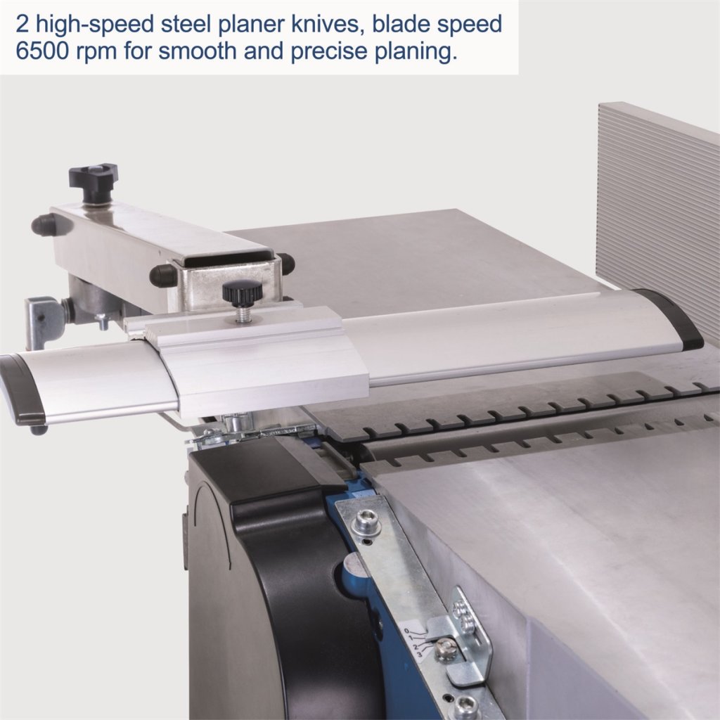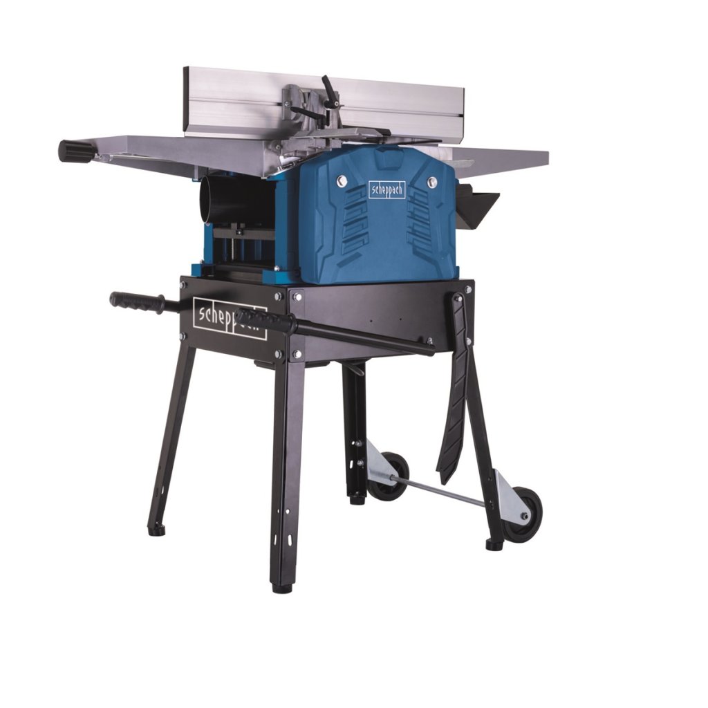 HMS 1500 - protahovačka/hoblovka Scheppach HMS 1500 je kombinovaný stroj, určený pro náročné kutily nebo do dílen, vyžadujících profesionální výsledky. Stroj umožňuje jak klasické hoblování dřeva, tak disponuje i funkcí protahu. Přestavba z hoblovky na protahovačku je snadná a není k tomu potřeba žádné nářadí. Kompaktní design minimalizuje prostorové nároky v dílně. Přesun stroje usnadňuje standardně dodávaná základna s koly a velká výsuvná madla. Robustní konstrukce zvládá bez problémů práci s hranoly a prkny z měkkého i tvrdého dřeva o šířce až 260 mm. Silný bezúdržbový indukční motor 2200 W spolu se dvěma ocelovými noži rotujícími rychlostí 6500 ot./min. se starají o velmi čistý a přesný řez, což v praxi znamená ještě jemnější opracování plochy. Nože jdou velice snadno vyměnit a celé ovládání stroje je velmi jednoduché a komfortní. Nastavení výšky protahu (max. 160 mm) se děje snadno pomocí otočné kliky. Na přesnosti opracování se podílí i velký hoblovací stůl z odolné, tlakově lité hliníkové slitiny a přesná masivní hoblovací zarážka s možností nastavení od 90° do 135°. Stůl protahu je potom vyroben z otěruvzdorné šedé litiny. Posuvná tyč a nástavec na odsávání pilin je ve standardní výbavě, zrovna tak jako bezpečnostní pojistky i spínač chránící obsluhu před nechtěným spuštěním stroje.Doplňkové parametry