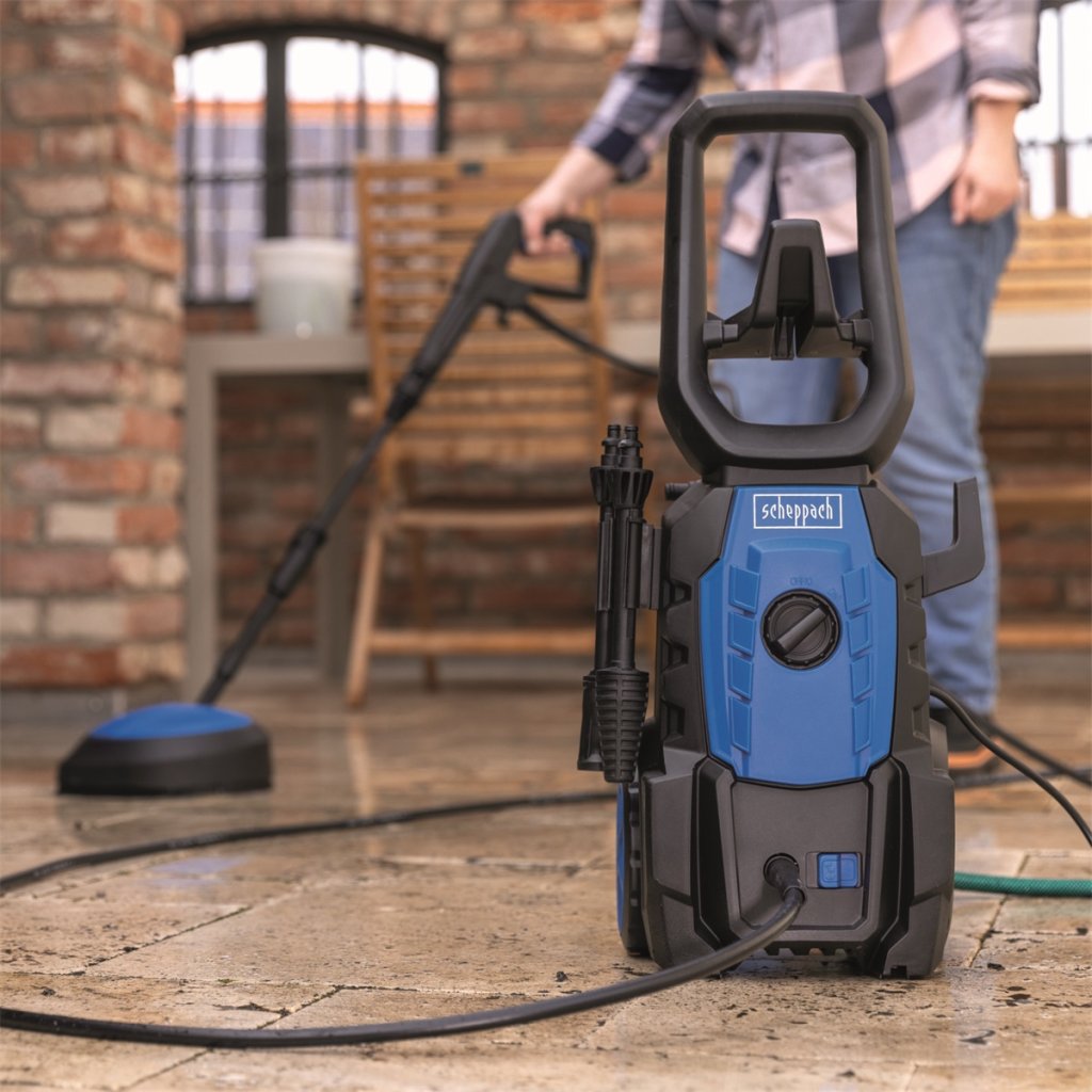 Tlaková myčka Scheppach HPC 1600 KIT je lehká a kompaktní myčka s bohatým příslušenstvím, se kterou lehce zvládnete všechny běžné úklidové práce kolem domu nebo dílny. Umytí auta, kola, zahradního nábytku, květináčů nebo zahradního náčiní a techniky se stane hračkou. Se standardně dodávaným čističem ploch není problém umýt dlažbu na verandě nebo podlahu v garáži. S váhou pouhých 7,2 kg, hadicí dlouhou 5 m, vysokým madlem a pojezdovými kolečky se s myčkou snadno manipuluje, přičemž silný motor o výkonu 1600 W a kvalitní kovové čerpadlo vyvinou maximální tlak až 135 barů. Pro snadnou obsluhu jsou připojovací prvky a hadice vybaveny rychlospojkami. Základní příslušenství, jako tlaková pistole a hadice se dají při skladování pohodlně umístit přímo v držácích na myčce. Myčka je vybavena čerpadlem se samonasávací funkcí. Myčku tak lze připojit nejenom ke kohoutku s tlakovou vodou, ale myčka si může sama nasávat vodu z kbelíku, sudu nebo z jiné nádrže. Nejste tak při mytí omezeni dostupností vody z běžného vodovodního řádu. Stroj je rovněž vybaven systémem Auto stop, kdy se při uvolnění spínače na tlakové pistoli rovněž vypíná motor.