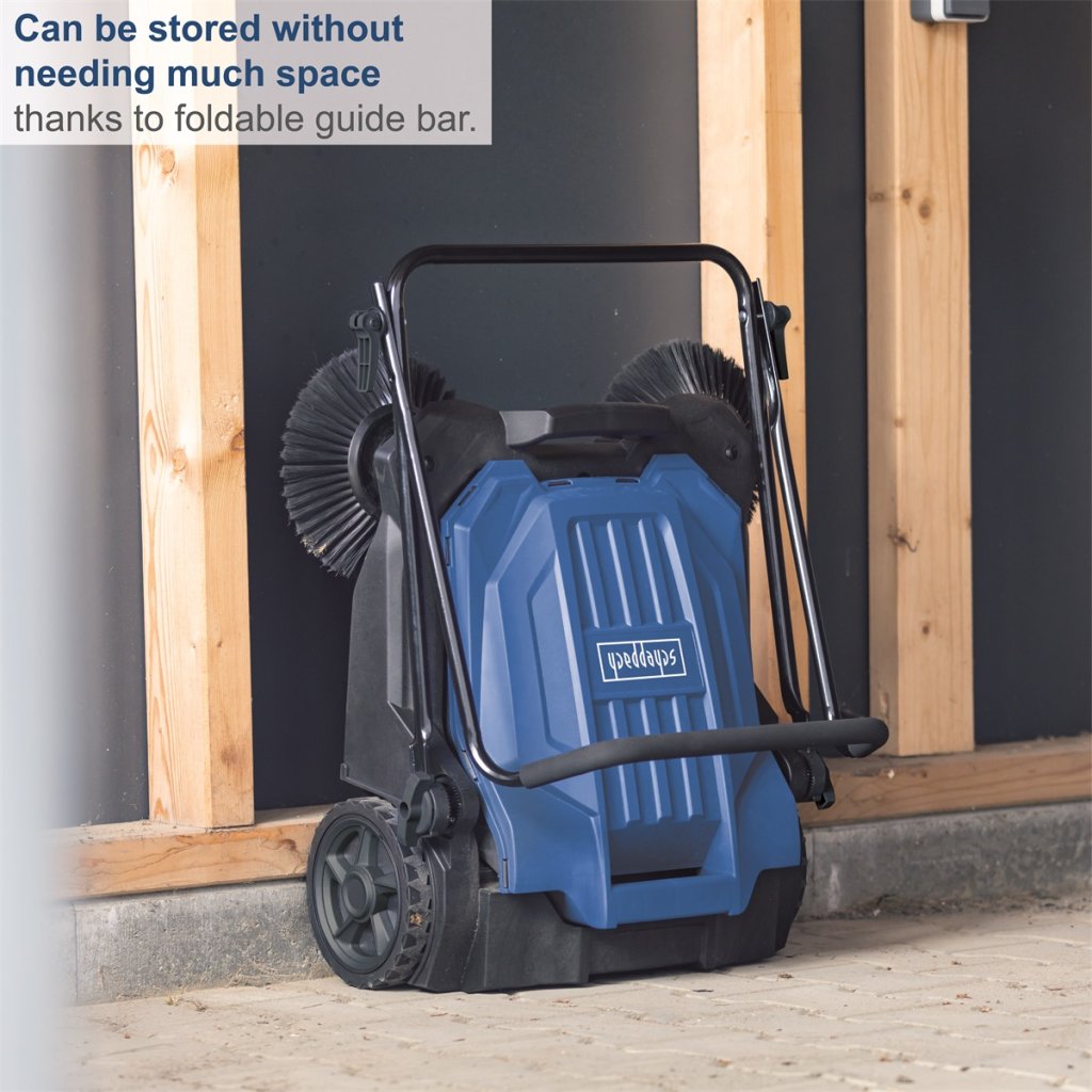 Scheppach S 800 je výkonný ruční zametací stroj, patřící k vrcholu ve své třídě. Zapomeňte na koště, bolavá záda a úmornou práci. S tímto strojem bude i zametání zábavou. Dvorek, příjezdová cesta, terasa, garáž i ostatní zpevněné plochy v domě a na zahradě budou vždy vzorně uklizené, a navíc bez námahy. Pomůže udržet vše v čistotě i okolo vaší firmy, dílny nebo provozovny. Jedinečný zametací systém se skládá ze dvou odolných postranních kartáčů a jednoho středového. Díky postranním kartáčům si stroj snadno poradí i s nečistotami v rozích, podlé hran, spojů apod. Veškeré smetí je nekompromisně dopraveno do objemného zásobníku 20 l, takže ho není třeba často vyprazdňovat. Díky záběru 65 cm se strojem za hodinu vyčistíte plochu až 2600 m2. Stroj je lehký, díky velkým pogumovaným a jednomu otočnému kolu i velmi obratný a má plně sklopné ergonomické měkčené madlo. To spolu s kompaktními rozměry zaručuje i to, že nebude zabírat mnoho prostoru při skladování. Pro ještě větší úsporu místa ho lze skladovat i nastojato.Podmínky prodloužené záruky naleznete zde.