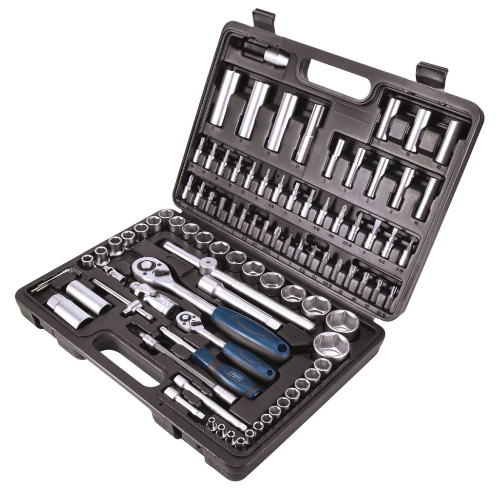 15x nástrčný ořech 1/2: 10; 11; 12; 13; 14; 15; 16; 17; 18; 19; 20; 21; 22; 23; 24 mm, (délka 38 mm); 27; 30; 32 mm (délka 42 mm), 4x nástrčný ořech prodloužený 1/2: 14; 15; 17; 19 mm (délka 76 mm), 13x nástrčný ořech 1/4: 4; 4.5; 5; 5.5; 6; 7; 8; 9; 10; 11; 12; 13; 14 mm (délka 25 mm), 8x nástrčný ořech prodloužený 1/4: 6; 7; 8; 9; 10; 11; 12; 13 mm (délka 50 mm), ráčna 1/2: 72T (255 mm), ráčna 1/4: 72T (155 mm), T-vratidlo 1/4: (152,4 mm), šroubovák pro nástavce 1/4 150 mm, 2x prodlužovací nástavec 1/2: 125 mm; 250 mm, 2x prodlužovací nástavec 1/4: 50 mm; 100 mm, prodlužovací nástavec ohebný 1/4 150 mm, 2x nástavec na svíčky 1/2: 16; 21 mm, 2x nástavec kloubový: 1/2;1/4, adaptér: F3/8 x M1/2, bitový adaptér pro nástavec 1/4, adaptér 1/2 pro bity 5/16, 4x bity Torx: T40; T45; T50; T55, 3x bity křížové PH: PH3; PH4, 3x bity křížové PZ: PZ3; PZ4, 3x bity ploché: 8; 10; 12 mm, 4x bity šestihranné: 8; 10; 12; 14 mm, 6x nástavce Torx 1/4: T8; T10; T15; T20; T25; T30, 2x nástavec PH 1/4: PH1; PH2, 2x nástavec PZ 1/4: PZ1; PZ2, 3x nástavec plochý 1/4: 4; 5,5; 7 mm, 4x nástavec šestihranný 1/4: 3; 4; 5; 6 mm, 3x imbusový klíč: 1,5; 2; 2,5 mm