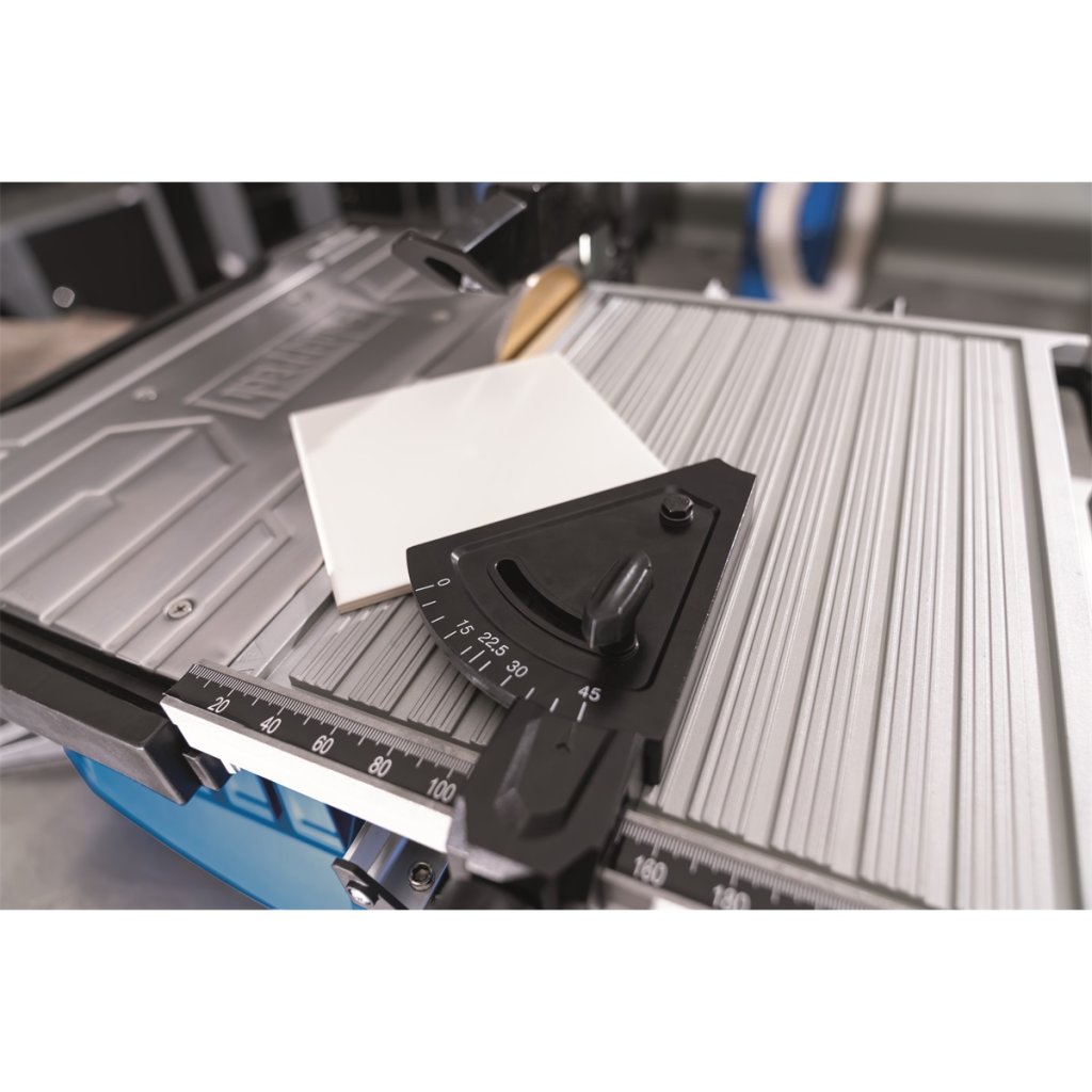 WTS 2000 - řezačka na dlažbu a obklady s posuvným stolkem Moderní řezačka na dlažbu Scheppach WTS 2000 je výborným pomocníkem všech řemeslníků nebo kutilů pracujících často s obklady či dlažbou a je pro ně důležitá mobilita nebo potřeba kompaktního a lehkého stroje. Zásadní výhodou je koncepce s posuvným stolkem, díky čemuž nejsou problémy řezy o délce až 450 mm a výšce 32 mm. Stolek s přesnou milimetrovou stupnicí obsahuje i úhlové pravítko s integrovanou stupnicí pro řezání pod úhly a rovněž praktický posuvný boční doraz. Prémiový diamantový kotouč je, na rozdíl od běžných konstrukcí, pevně usazen, takže dlouhé řezy jsou velice přesné. Podle tloušťky materiálu jde výškově nastavit rovněž kryt kotouče. Silný motor 900 W s tepelnou ochranou si hravě poradí s řezáním dlažby, obkladaček, mramoru apod. Robustní podstavec obsahuje jímku na vodu pro chlazení kotouče a bezprašnou práci, integrovanou rukojeť s gumovým madlem, držáky na boční doraz a úhlové pravítko pro ochranu při transportu, gumové nožičky a otvory pro přidělání k pracovní desce. Stroj je vybaven nejmodernější bezpečnostní ochranou a je certifikovaný německou společností TÜV i pro dlouhodobé používání.Podmínky prodloužené záruky naleznete zde.Doplňkové parametry