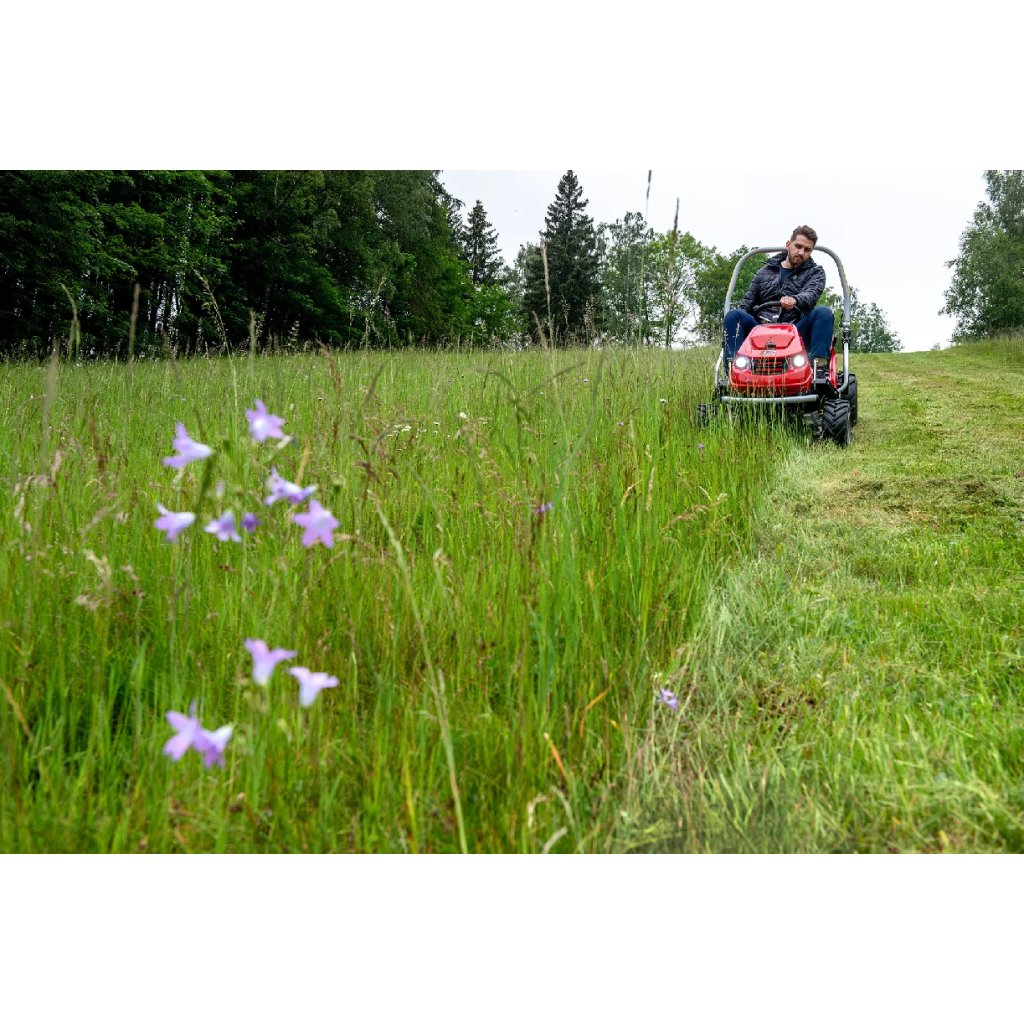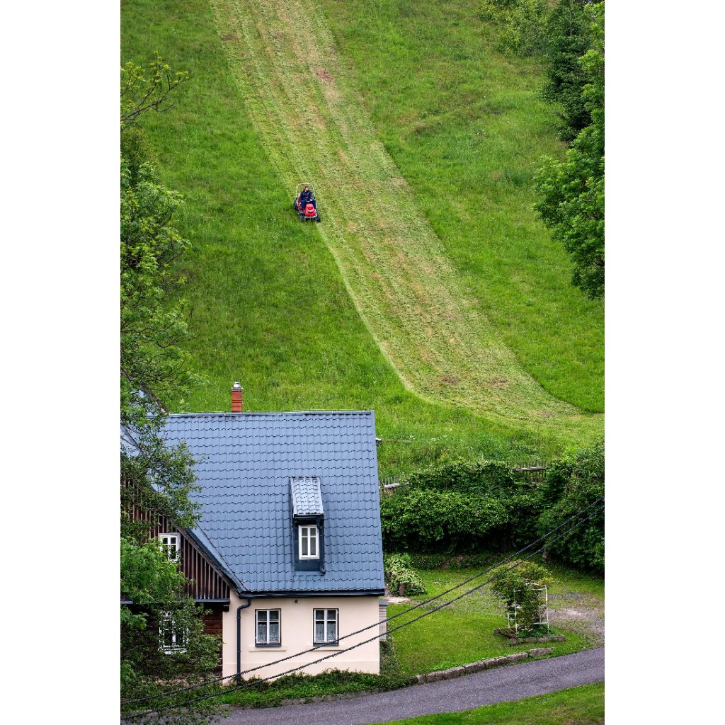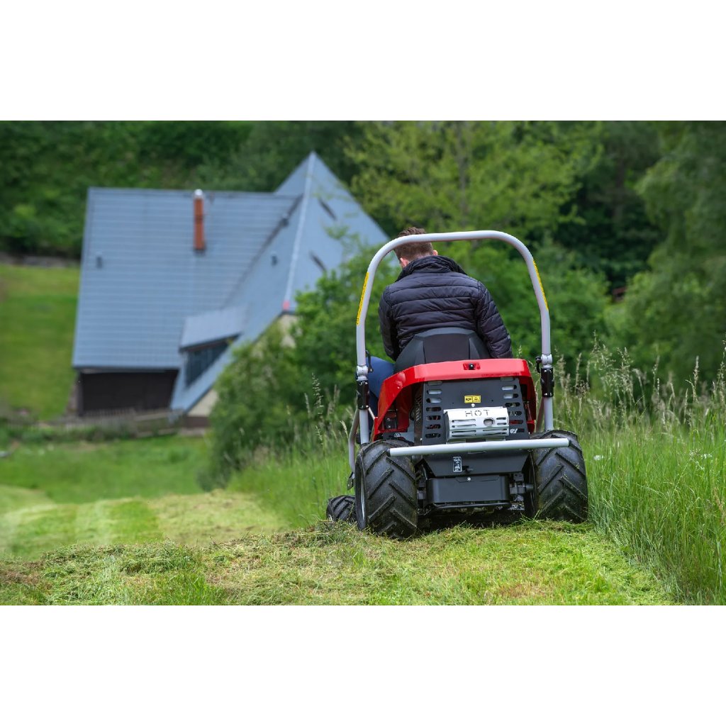 Travní mulčer Crossjet 4×4 si poradí s náletovými dřevinami i nepřístupným terénem, a to díky nízkému těžišti, výkonnému motoru a uzávěrce diferenciálu.