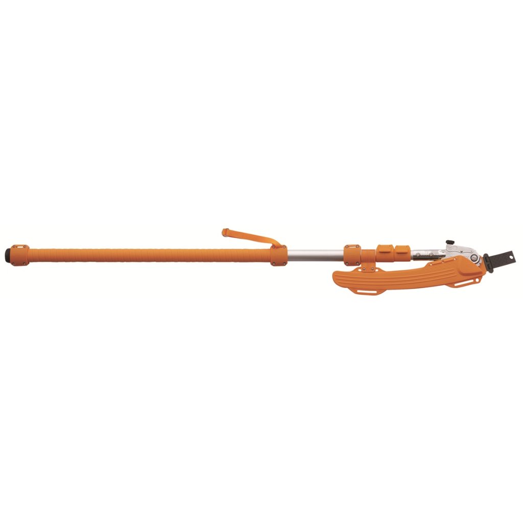 Hliníková násada má oválný tvar, díky které máte velmi přesnou kontrolu nad směrem řezu, což budete potřebovat při prořezávání ve velké výšce. Navíc tento tvar poskytuje větší pevnost a tuhost po celé délce tyčové pily a minimalizuje ohýbání. Při plném rozložení násady pak pila dosahuje maximální délky 3,6 metru. Dva zajišťovací mechanismy (tlačítka a páky) společně vytvářejí nejbezpečnější a nejstabilnější zajištění preferované délky násady, přičemž nejnižší část je opatřena gumou rukojetí pro pohodlné a bezpečné uchopení i za mokra.