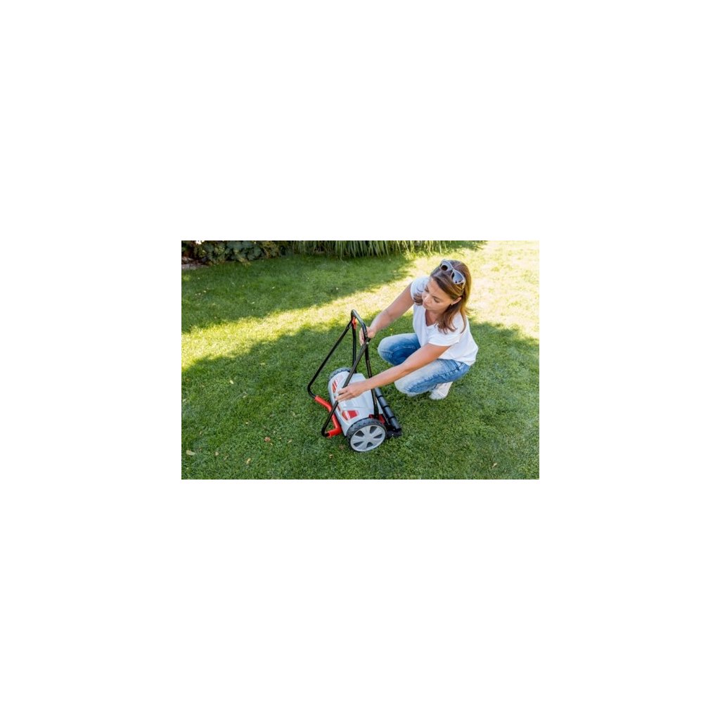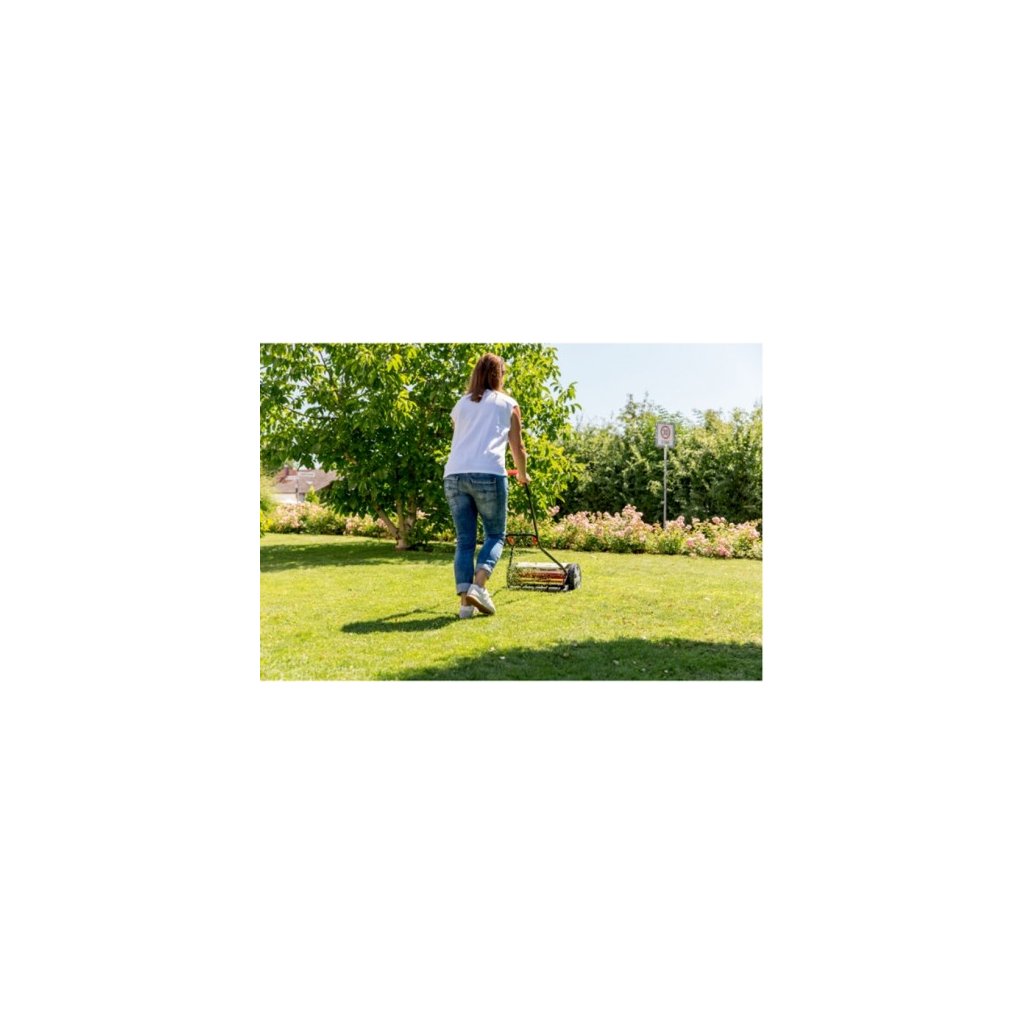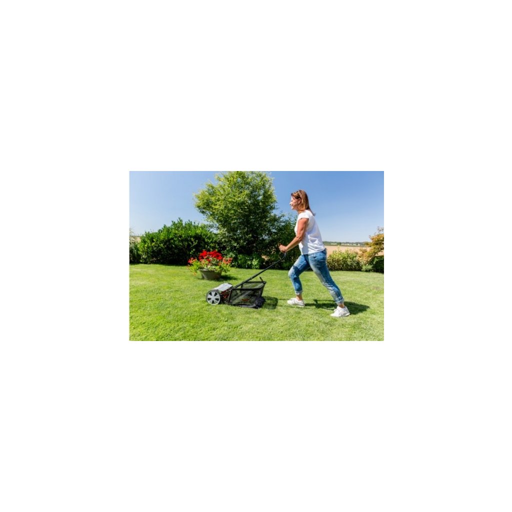 Vřetenová sekačka Razor Cut 38.1 HM Comfort je se šířkou záběru 38 cm ideálním pomocníkem pro trávníky do 250 m². Výšku sečení lze nastavit ve čtyřech polohách od 14 do 35 mm. Protože se vřeteno sekačky s 5 ocelovými noži a spodním nožem vzájemně nedotýká, docílíte přesného a čistého řezu a o trávník je tak perfektně postaráno. Kola o průměru 220 mm běží velmi hladce i na nerovném povrchu. Díky kompaktní konstrukci a nízké hmotnosti, pouhých 7,8 kg, je manévrovatelnost vřetenové sekačky vynikající. Sběrný koš o objemu 50 l lze přikoupit.