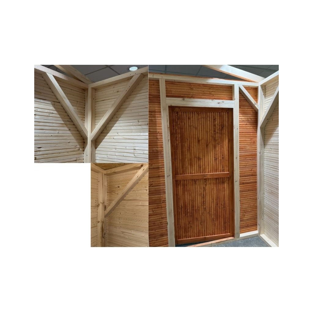 Stěny domku jsou vyrobeny z kvalitních smrkových palubek, které zajišťují pevnost konstrukce a zároveň dodávají domku přirozený a příjemný vzhled. Smrkové dřevo je oblíbené pro svou odolnost, dlouhou životnost a krásnou přírodní kresbu, která dokonale zapadne do jakéhokoli zahradního prostředí.